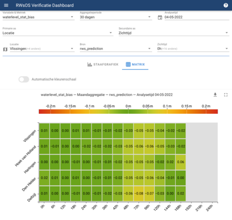 The last example is the verification tooling dashboard that is in development. This is intended to show whether model forecasts have been computed correctly. It shows the match between the forecasts and the observations that are available up to now. This exposes any errors in the model (or observations).
